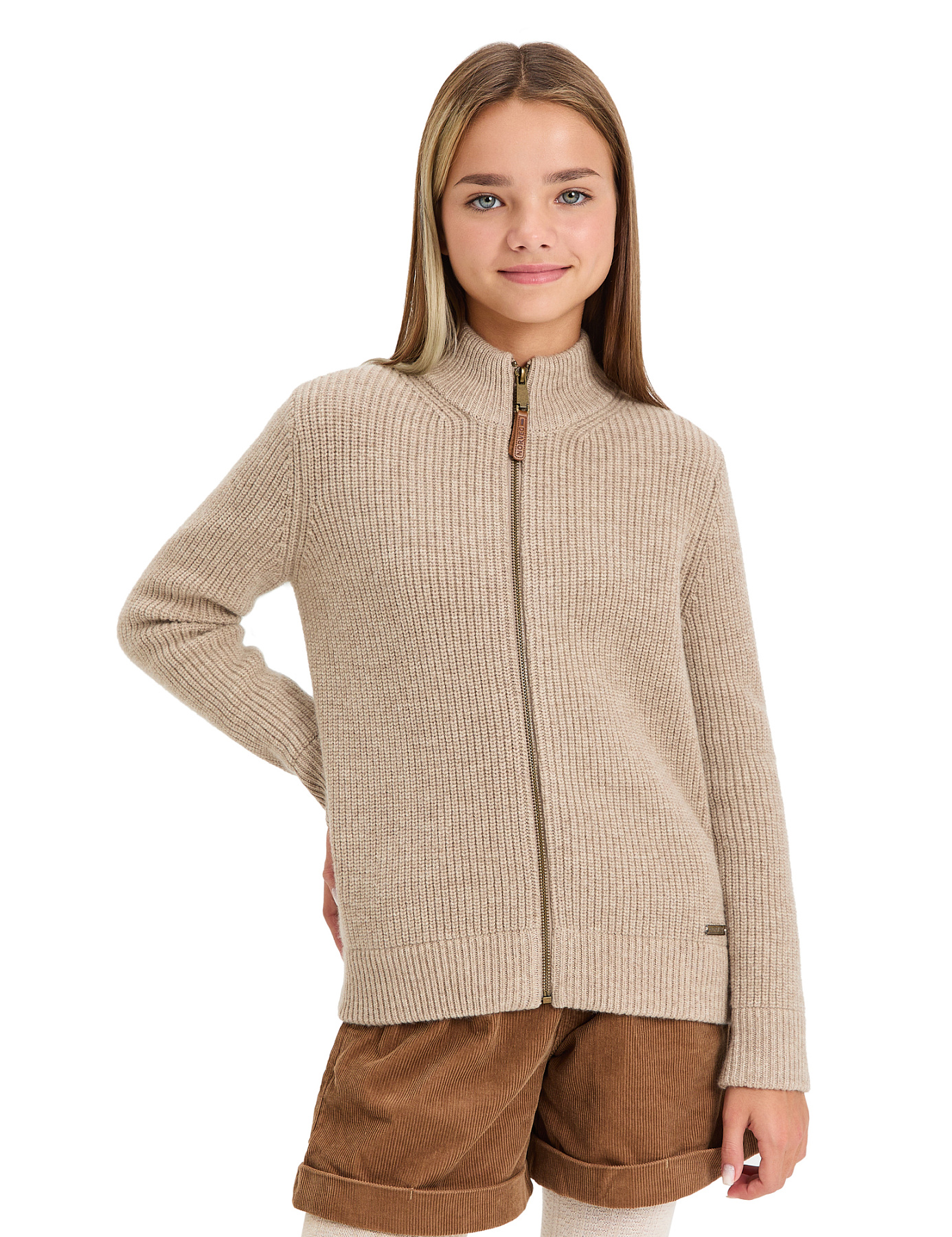 Кардиган из 100% шерсти мериноса на молнии для девочек-подростков, цвет бежевый