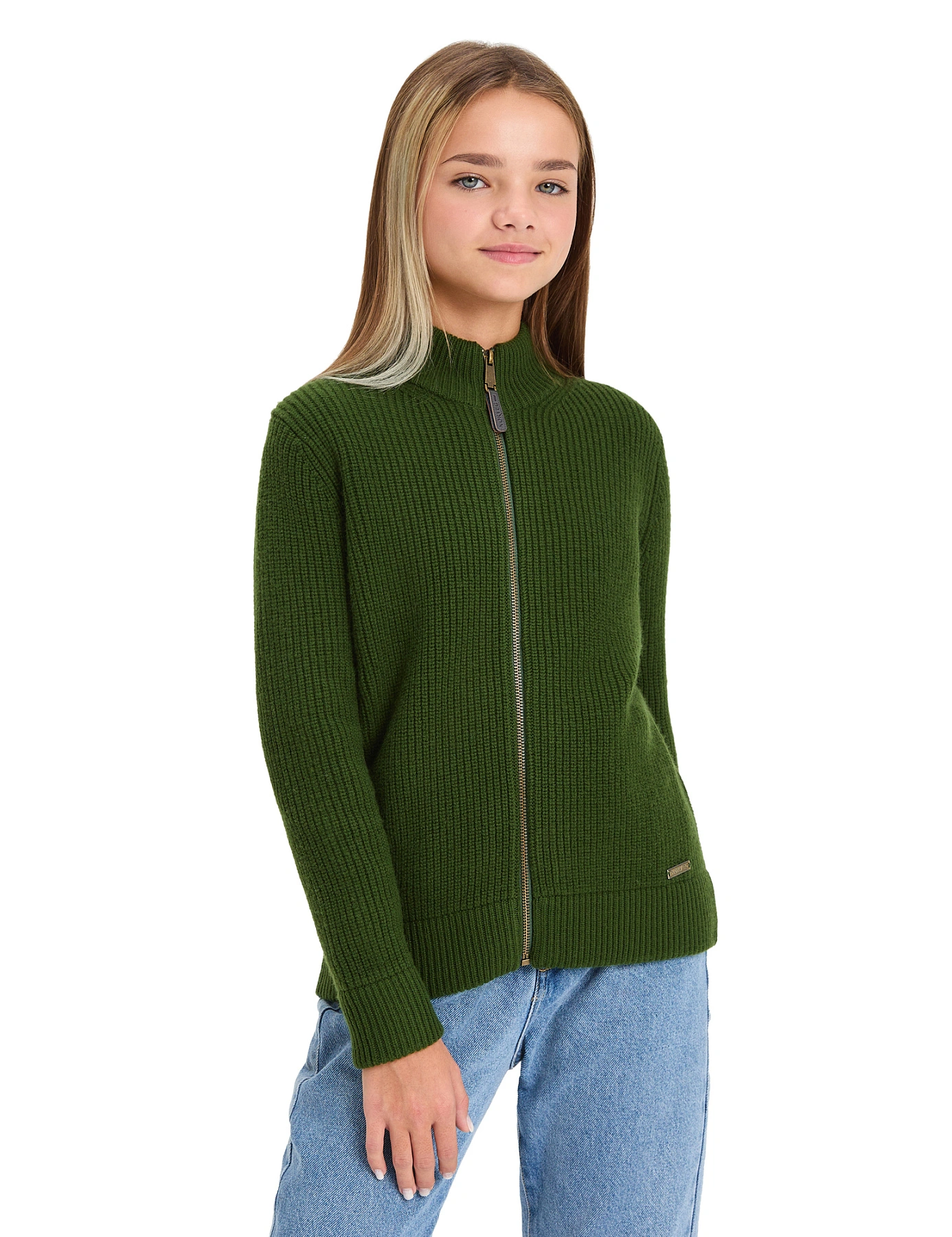 Кардиган из 100% шерсти мериноса на молнии для девочек-подростков, цвет олива