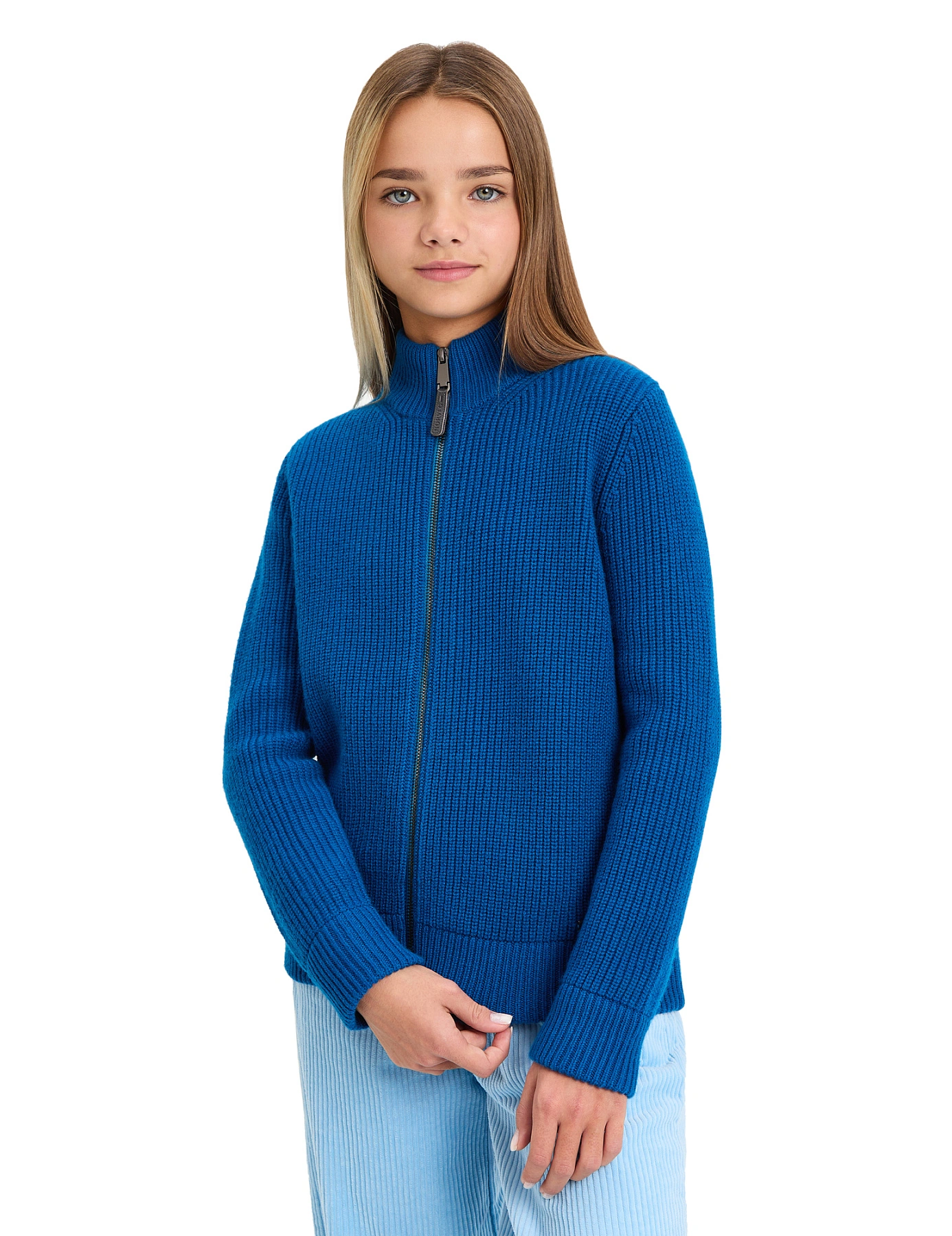 Кардиган из 100% шерсти мериноса на молнии для девочек-подростков