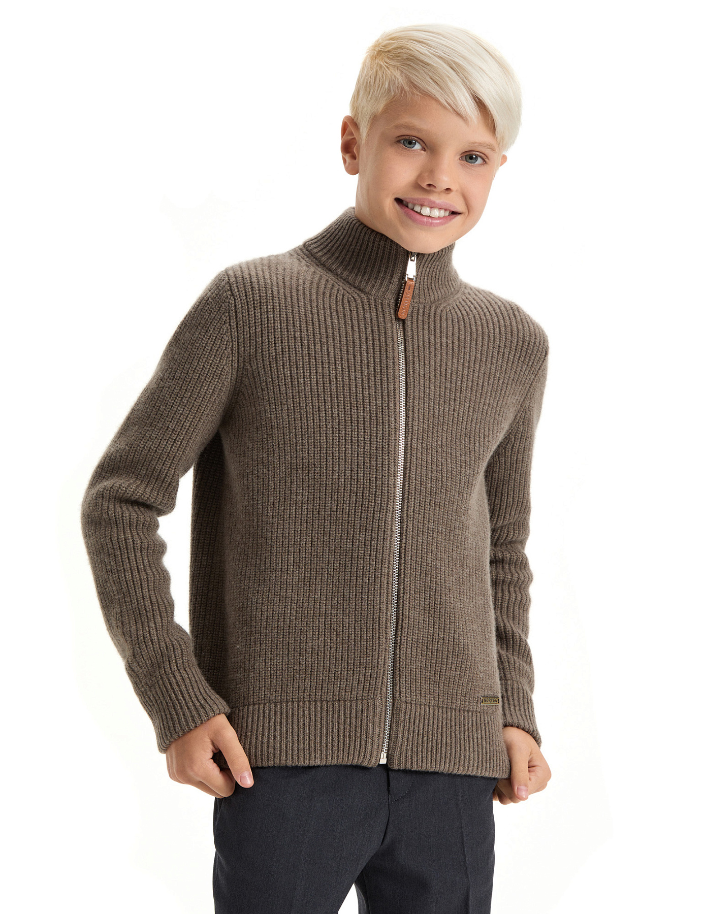 Кардиган шерстяной на молнии для мальчиков-подростков, цвет коричневый
