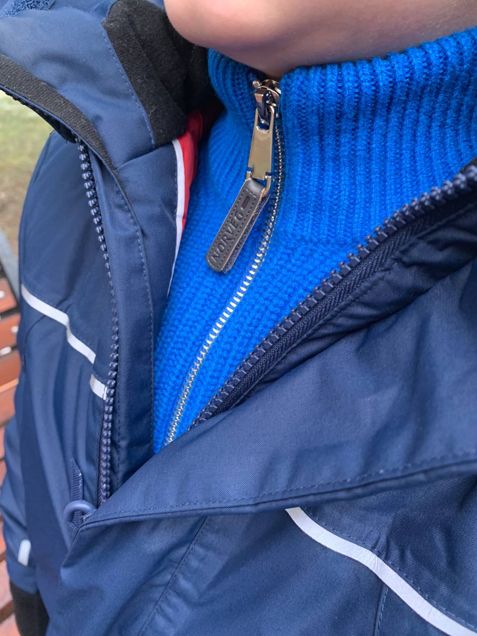 настоящий зимний шерстяной кардиган для ребенка! действительно сделан из 100% шерсти мериноса, ребенок всегда находится в тепле. молния не заедает, ничего нигде не торчит. советую к покупке!