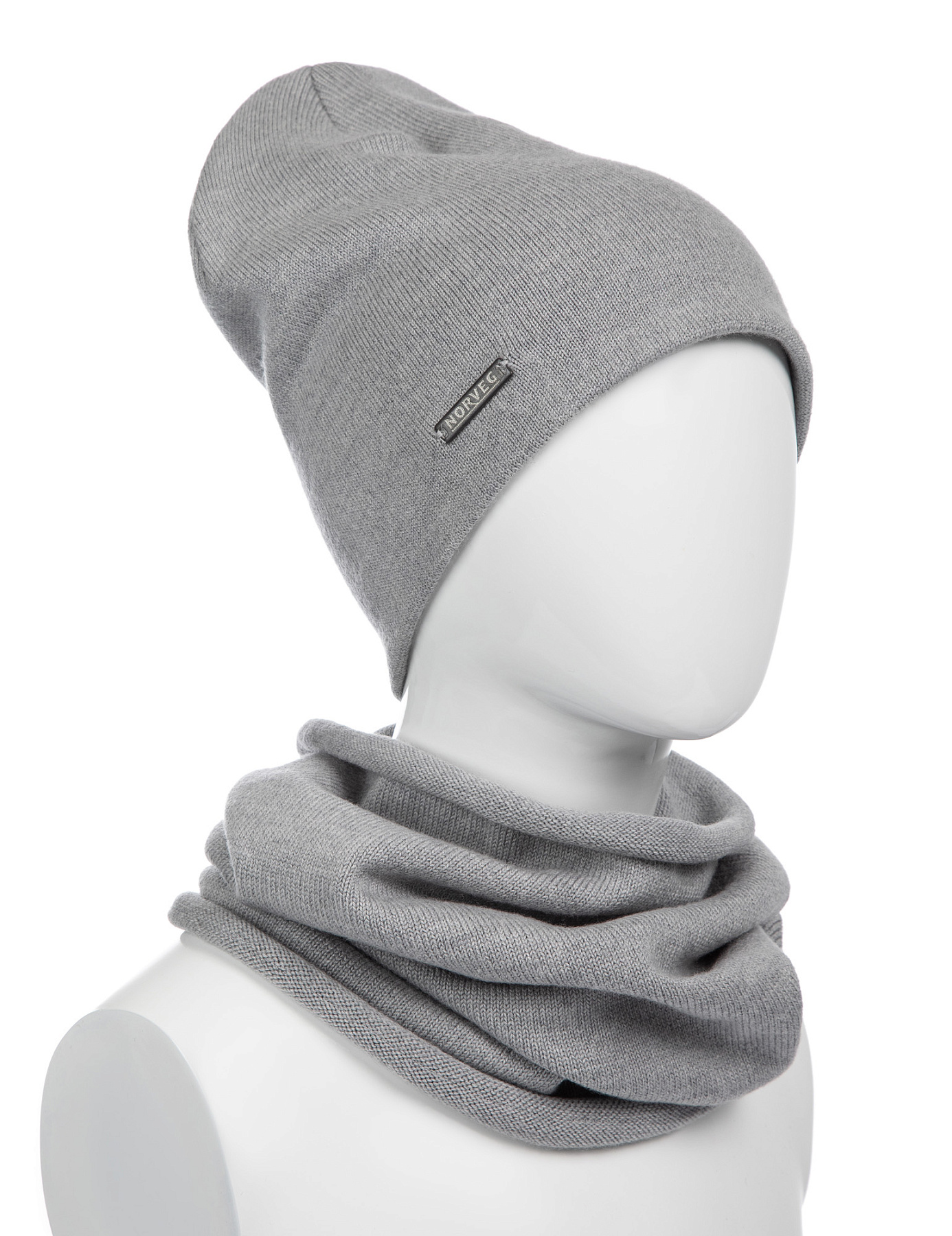 Комплект шапка и снуд из 100% шерсти мериносов для женщин, цвет серый меланж