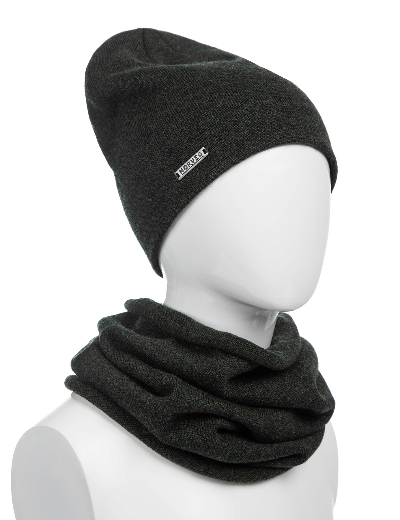 Комплект шапка и снуд из 100% шерсти мериносов для женщин, цвет темно-болотный