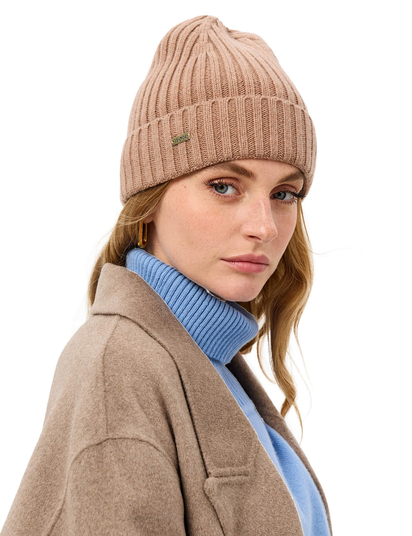 Шерстяная шапка с отворотом, цвет бежевый меланж