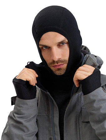 Тонкий, но теплы, в случае чего можно натянуть на голову или носить как повязку