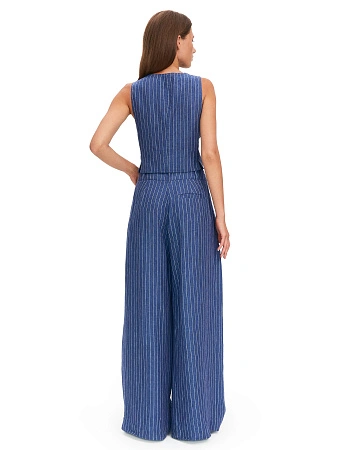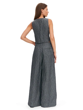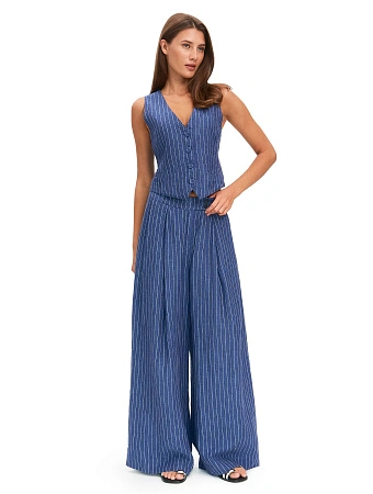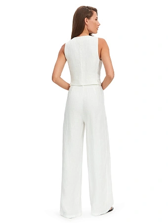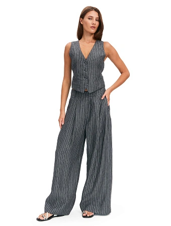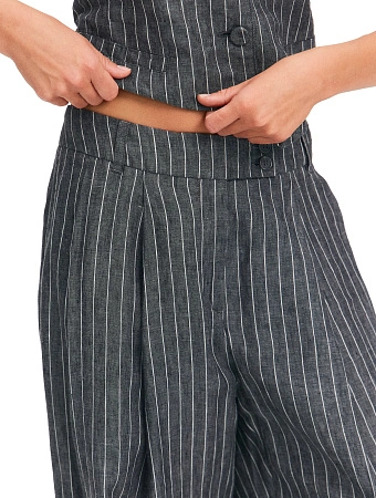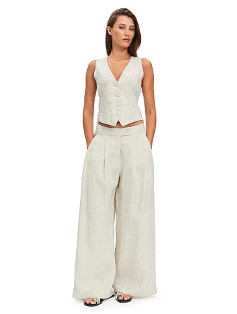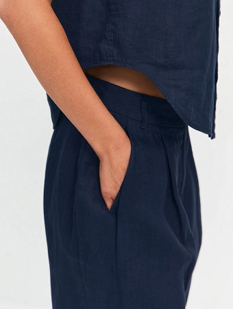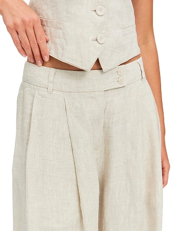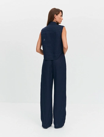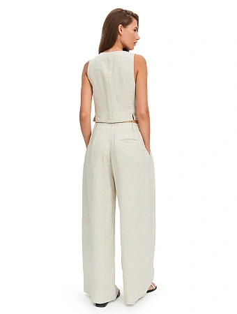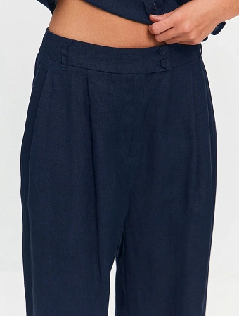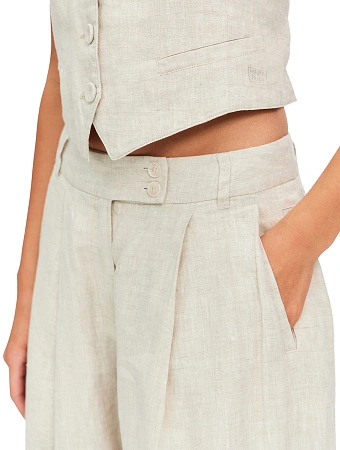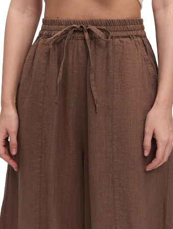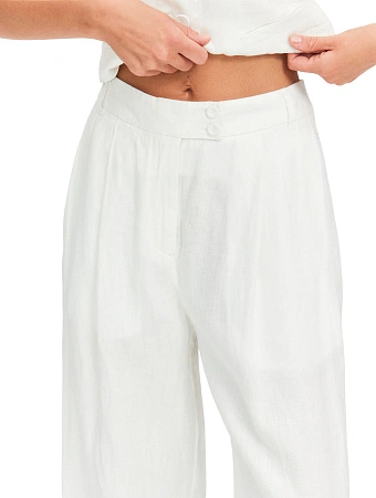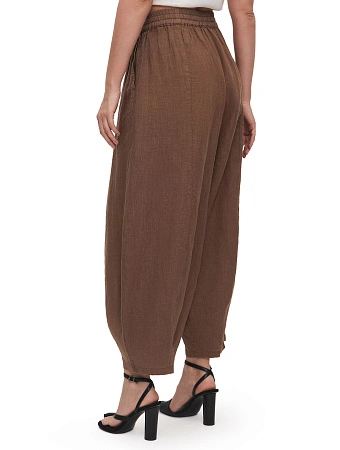 Женские брюки из умягченного льна – трендовый предмет летнего и домашнего гардероба для создания естественных, непринужденных образов. Крой максимально продуман для комфортного ношения: свободный силуэт, пояс на кулиске, широкая эластичная резинка на завязке, зауженные книзу штанины, не мешающие при ходьбе, просторные боковые карманы. Благодаря отстроченным передним и задним стрелкам брюки хорошо держат форму. Эффект мятой ткани придает вещи небрежную элегантность и расслабленность, а сдержанные натуральные оттенки позволяют быть ближе к природе. Брюки хорошо комбинируются с футболками, свободными топами, блузами. Вместе с рубашкой из серии LINEN образуют идеальный комплект для отдыха на морском побережье, ношения дома.