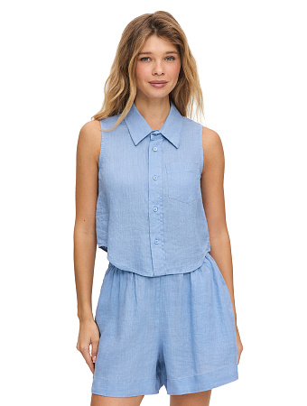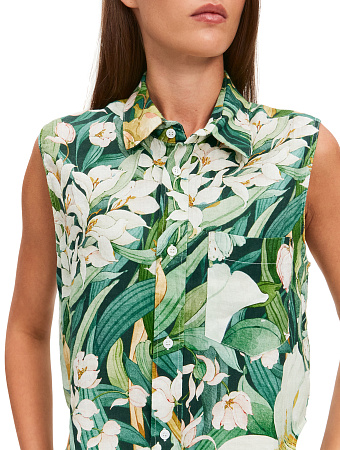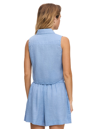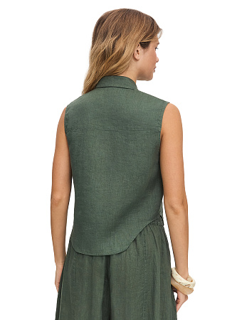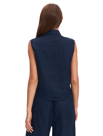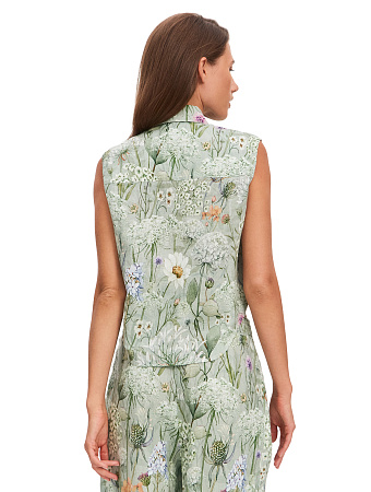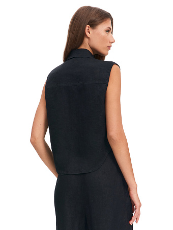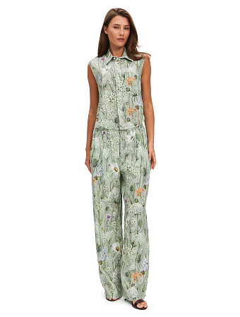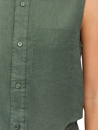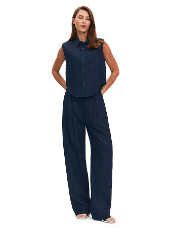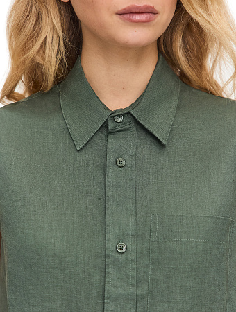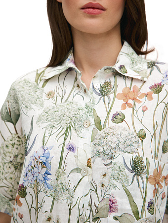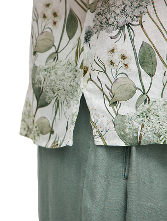 Модель выполнена из 100%-ного умягченного льна, лишенного природной жесткости. Ткань гипоаллергенна, тактильно приятна, обладает антибактериальными свойствами и позволяет коже дышать, поддерживая естественную терморегуляцию. Материал эффективно поглощает влагу и быстро испаряет ее, сохраняя чистоту и прохладу в течение всего дня, а также защищает тело от опасного ультрафиолета. Благородный эффект естественной мятости подчеркивает аутентичность льна, освобождая от необходимости тщательной глажки и привнося в образ ноту непринужденности.