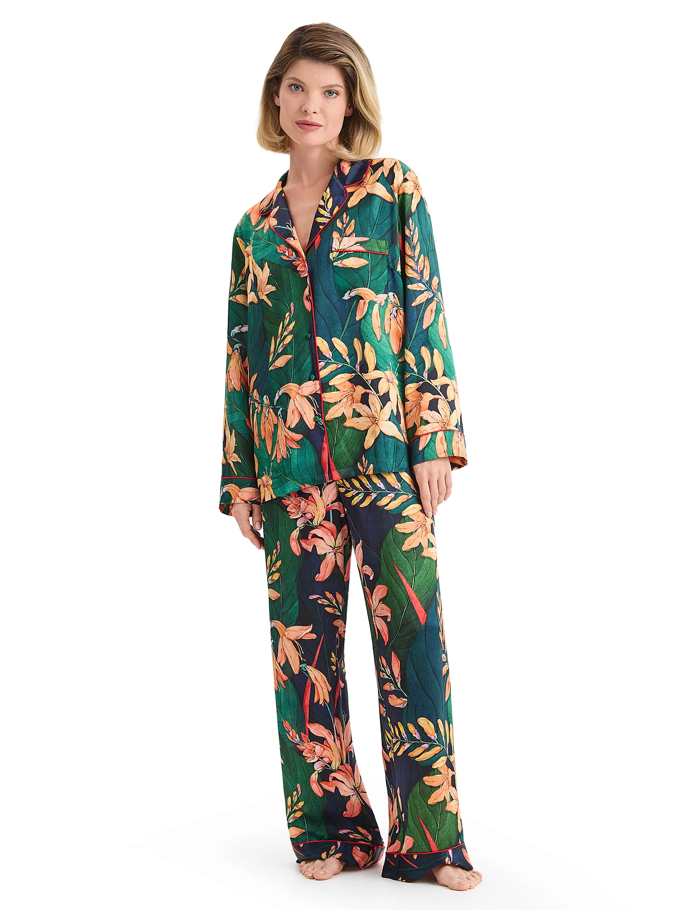 Костюм из шелка, цвет принт тропический
