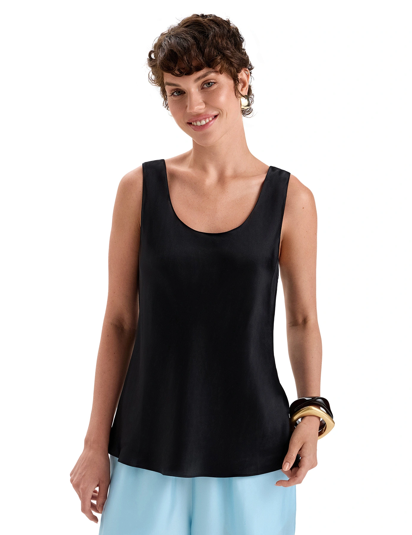 Шелковый топ – роскошный подарок для себя или близкого человека. Лаконичный дизайн и безупречные линии формируют изящный силуэт в самых разнообразных outfits: от уютного домашнего наряда до элегантного комплекта для особых случаев и вечерних выходов. Его можно носить как в многослойных образах, так и самостоятельно, с брюками и шортами из коллекции, а также с другим подходящим низом, в том числе с юбкой любой длины, классическим денимом. Дома, на пляже, на прогулке, под пиджак в офисе или на романтическом свидании – шелковый топ всегда будет уместен и останется актуальным в гардеробе на многие годы.