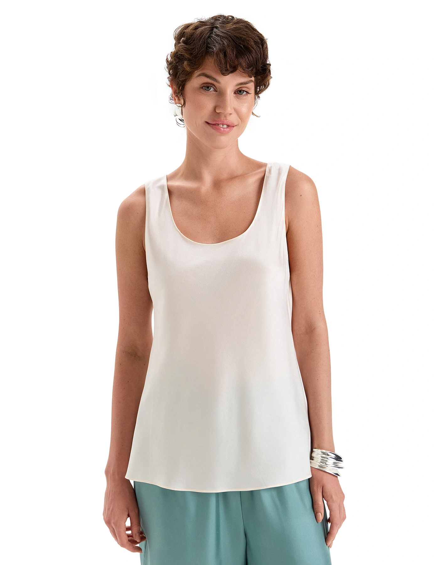 Шелковый топ – роскошный подарок для себя или близкого человека. Лаконичный дизайн и безупречные линии формируют изящный силуэт в самых разнообразных outfits: от уютного домашнего наряда до элегантного комплекта для особых случаев и вечерних выходов. Его можно носить как в многослойных образах, так и самостоятельно, с брюками и шортами из коллекции, а также с другим подходящим низом, в том числе с юбкой любой длины, классическим денимом. Дома, на пляже, на прогулке, под пиджак в офисе или на романтическом свидании – шелковый топ всегда будет уместен и останется актуальным в гардеробе на многие годы.
