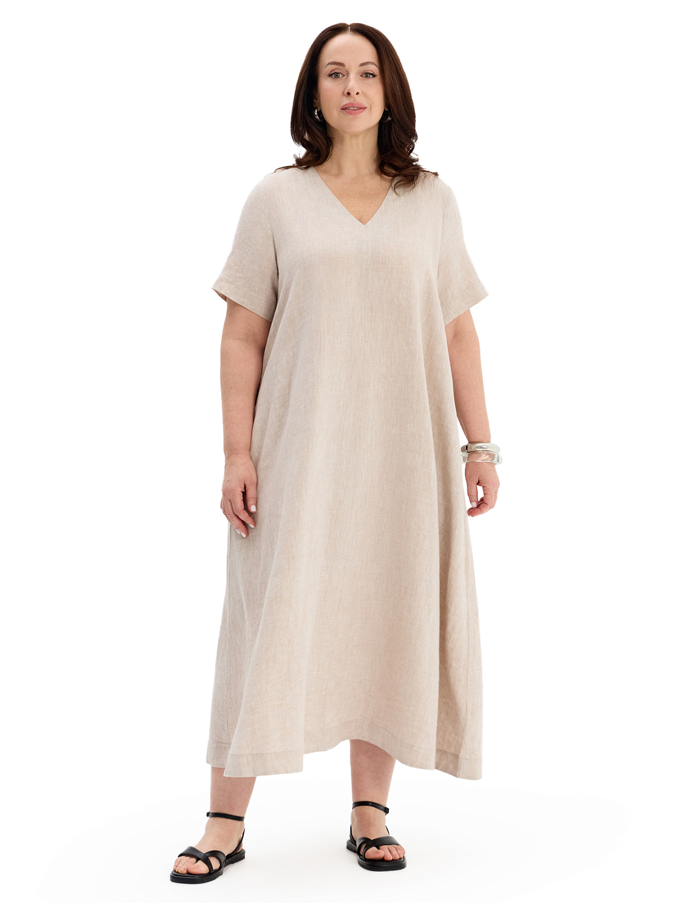 Платье А-силуэта из умягченного льна, цвет бежевый меланж