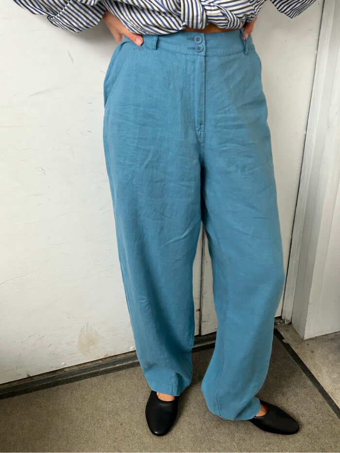 Брюки женские с карманами серии LINEN, цвет голубой пепельный