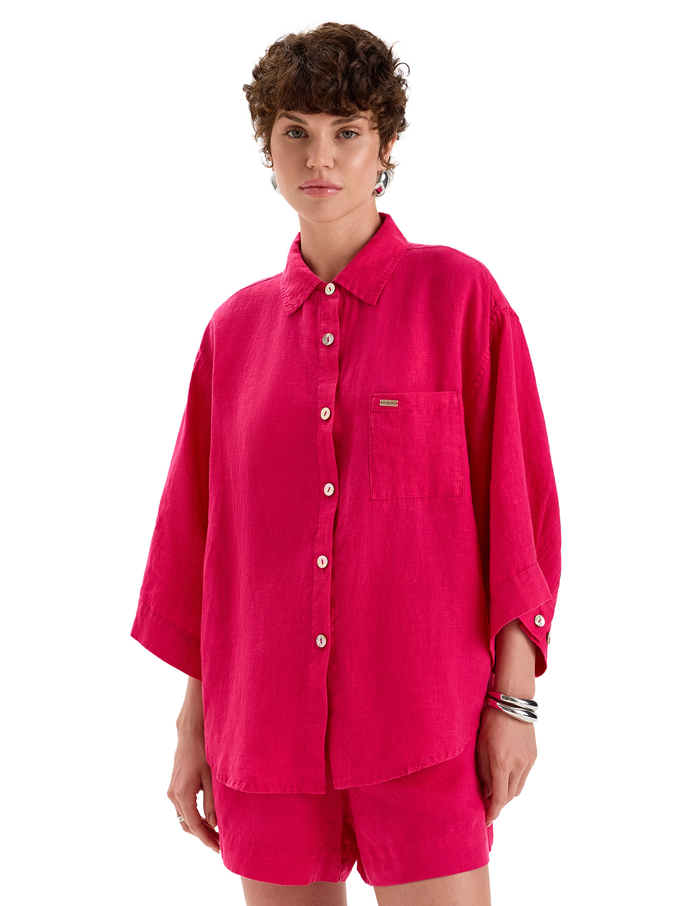 Рубашка женская серии LINEN, цвет фуксия