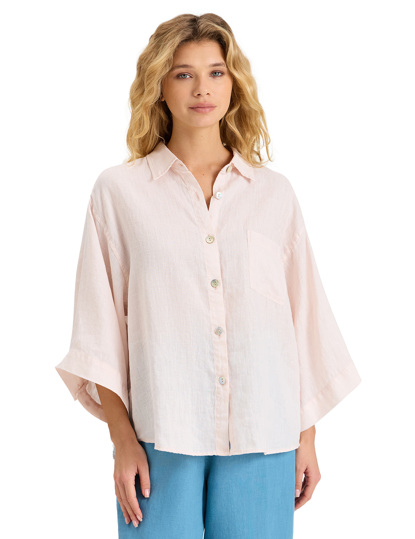 Рубашка женская c широкими рукавами серии LINEN, цвет бело-розовый