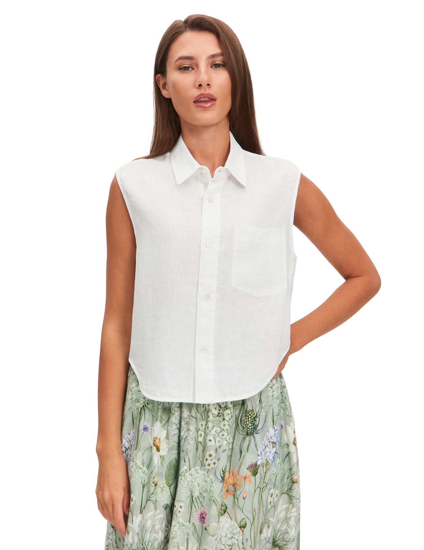 LINEN Блуза женская без рукавов, цвет белый