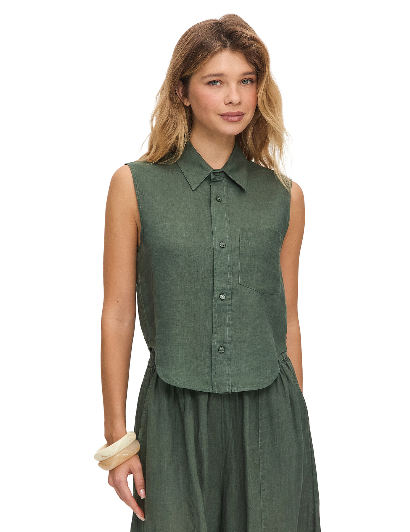 LINEN Блуза женская без рукавов, цвет темно-зеленый