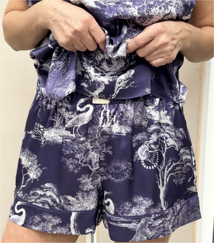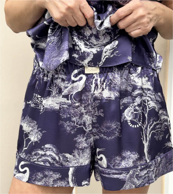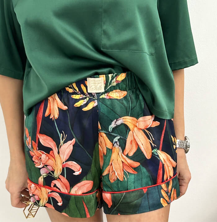 Женские шорты серии SILK из нежнейшего шелка – базовая одежда для создания изящных, легких и комфортных повседневных образов. Идеально сочетаются с топами из этой же коллекции бренда, образуя универсальные, стильные комплекты для сна, ношения в неформальной и домашней обстановке. Прекрасный выбор для путешествий, отпуска и пляжного отдыха. Шорты представлены в пяти дизайнерских расцветках: природных паттернах Tropical и Oriental и модных принтах Toile de Jouy в темном и светлом тонах и классическом черном.