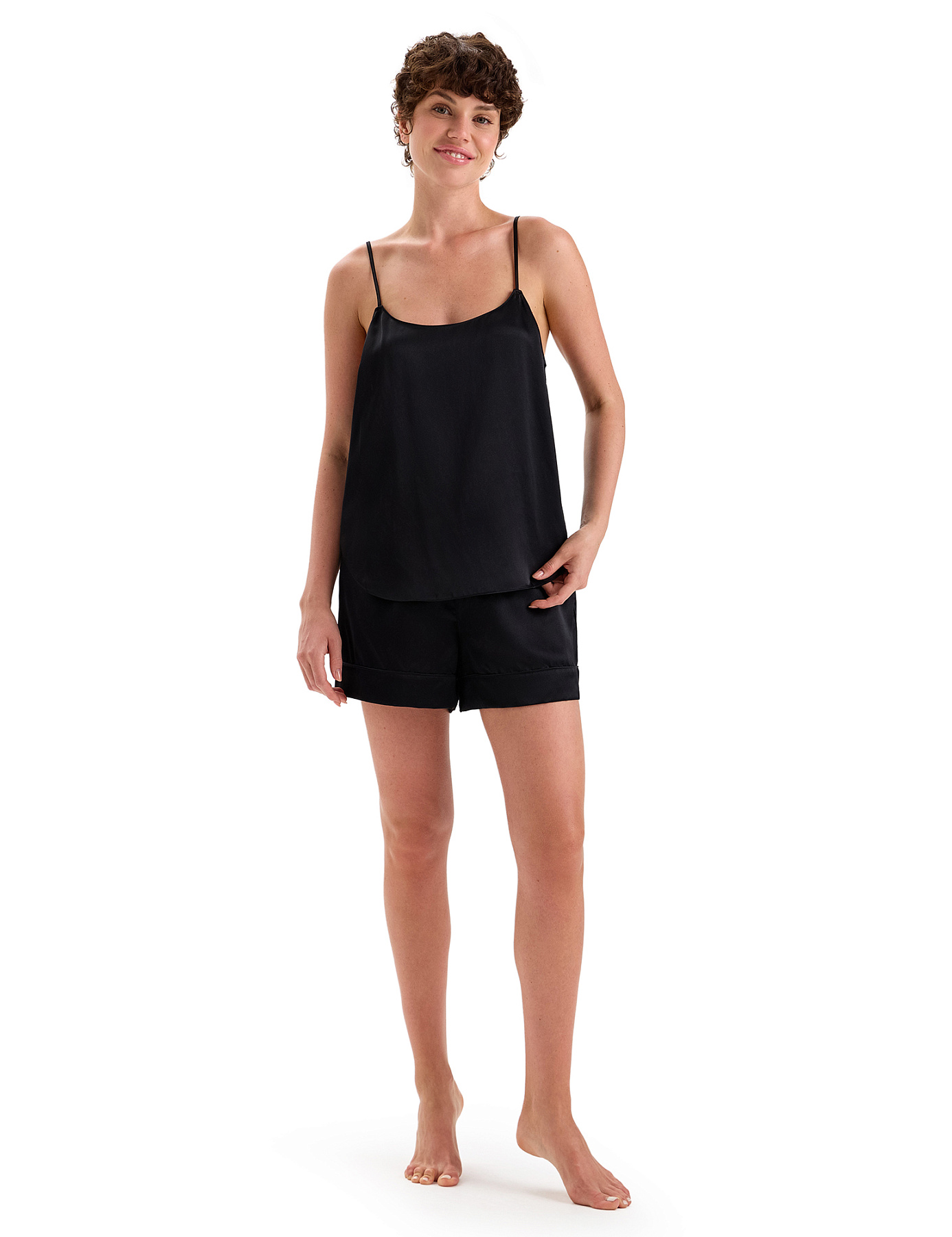 Шорты средней посадки, умеренно свободного кроя подходят для женщин любого телосложения и роста, не обтягивают и не стесняют движений. Фиксируются эластичной резинкой, не пережимая тело. Мягкие, аккуратные швы не ощущаются при носке. Края шорт оформлены широкими манжетами, наружные боковые швы отделаны кантом, на поясе нашит лаконичный лейбл с названием серии. Изделие из шелковой ткани с благородным глянцевым сиянием и эффектными переливами смотрится выразительно, красиво подчеркивает женственность фигуры и непревзойденный вкус своей обладательницы. Шелковые шорты соответствуют концепции sustainable fashion и не потеряют актуальности с годами. Это хорошая инвестиция в личный гардероб, а также изысканный подарок, который будет оценен по достоинству.