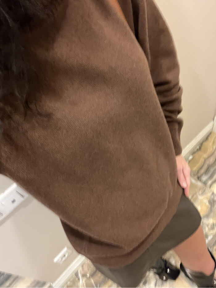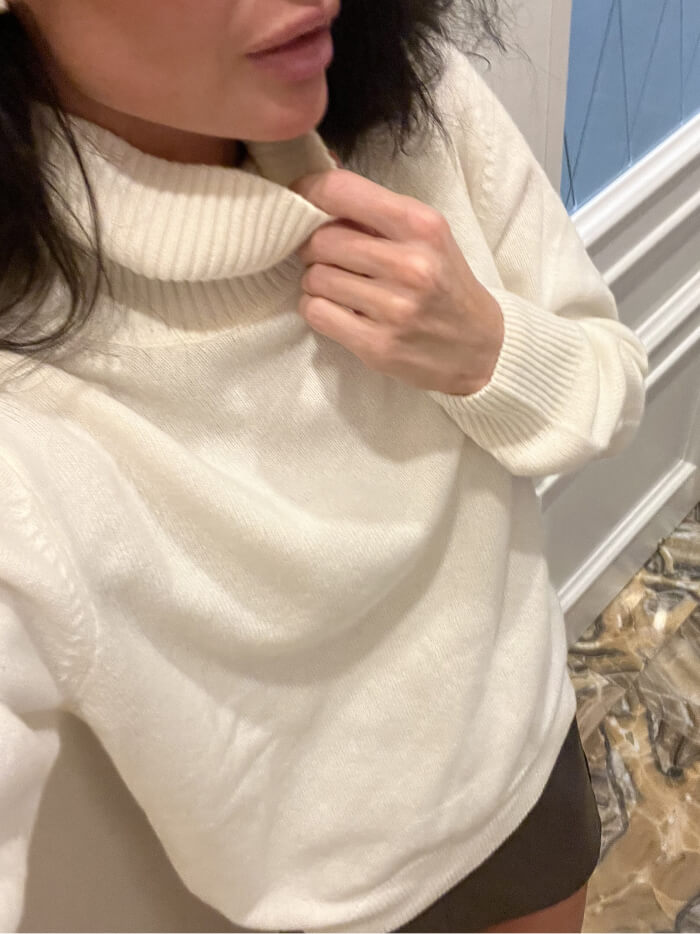 Свитерочек замечательный. Очень стильный крой, ничего лишнего. Сел изумительно, выбрала медный цвет - очень его люблю. Носила уже несколько раз, никаких катышков не появилось, стирается тоже легко и просто. В общем покупкой очень довольна.