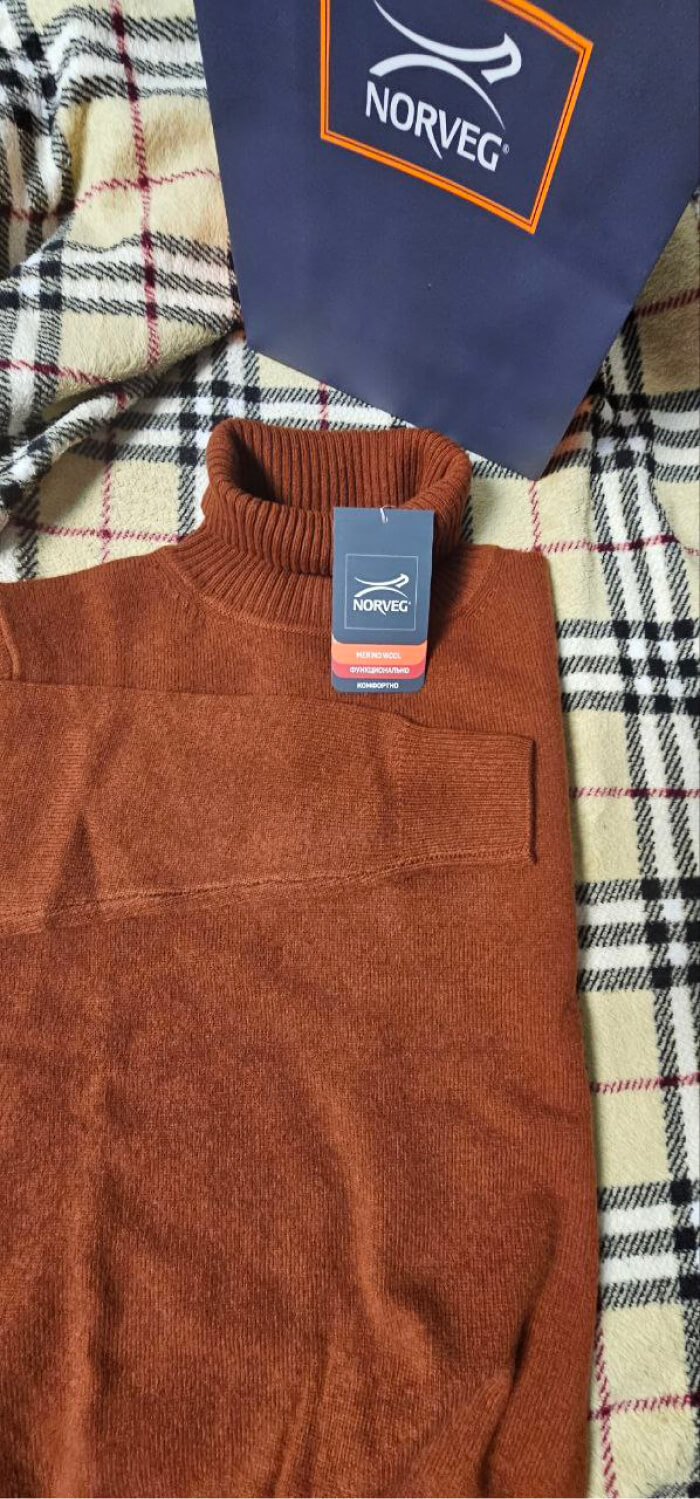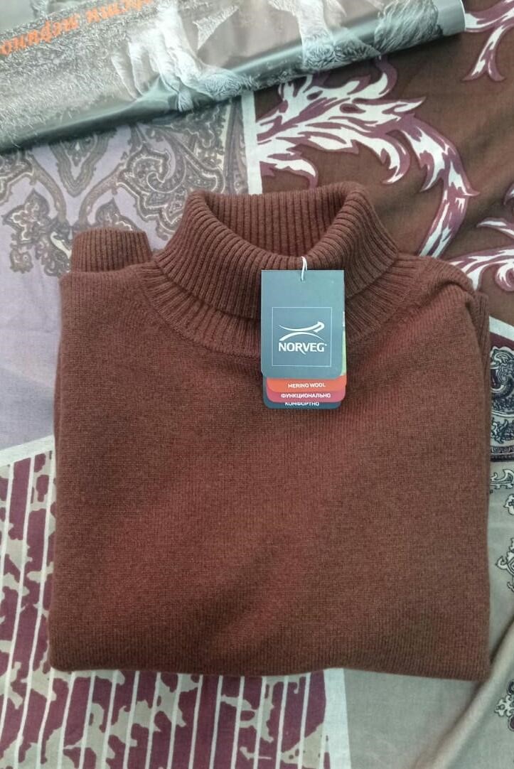 Свитер Merino Base из шерсти, цвет кирпичный, размер М. Свитер жене, да и мне понравился с первого взгляда. Он очень теплый и цвет к тому же красивый, яркий, необычный. Шикарное качество и добротное исполнение. Размер в размер. Адекватный ценник.