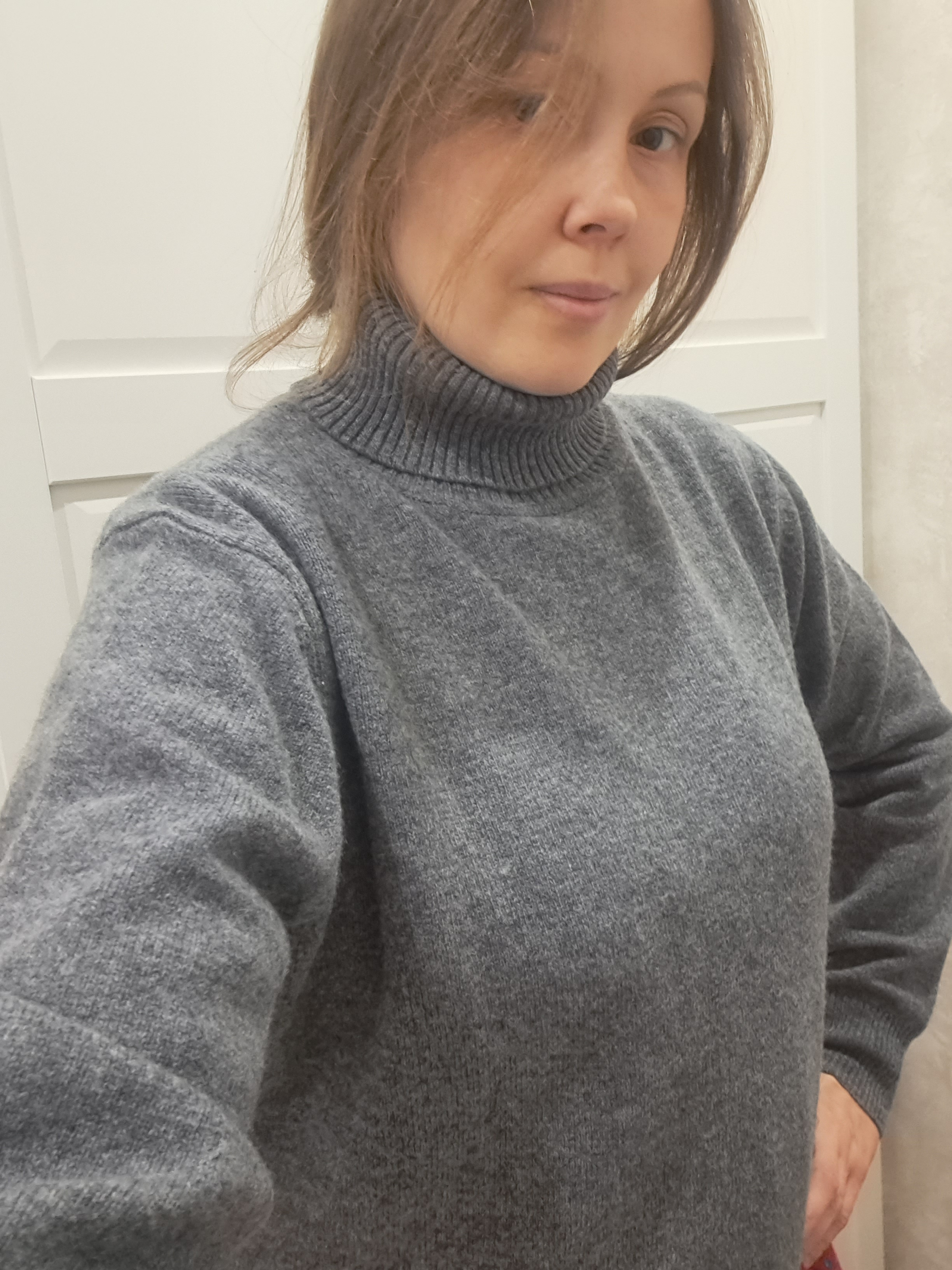 Получила этот замечательный свитер. Понравился цвет - синий глубокий,качество, мягкость. Он прекрасно подойдёт и для прогулок и для офиса. Спасибо