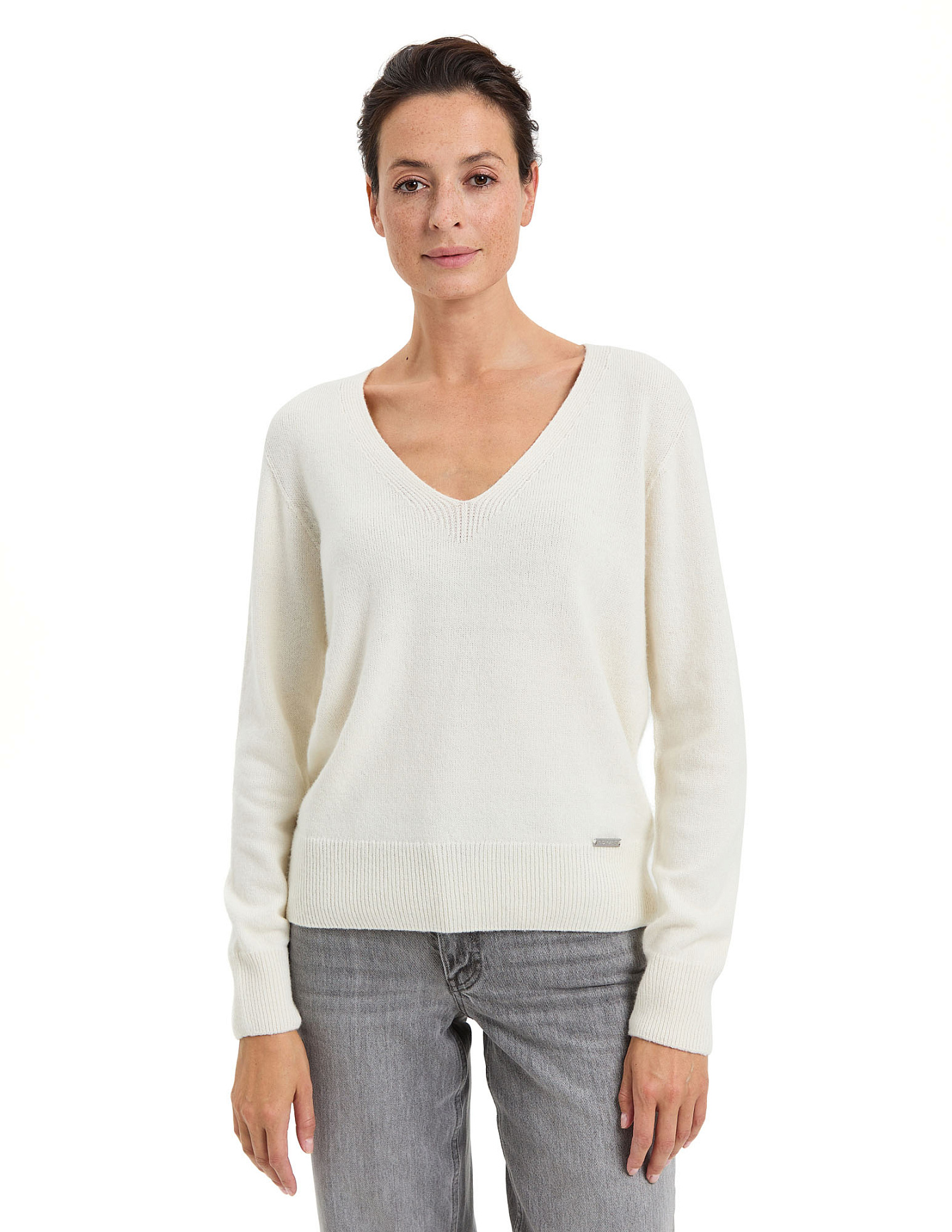 Джемпер Cashmere&Merino blend V-вырез, цвет молочный