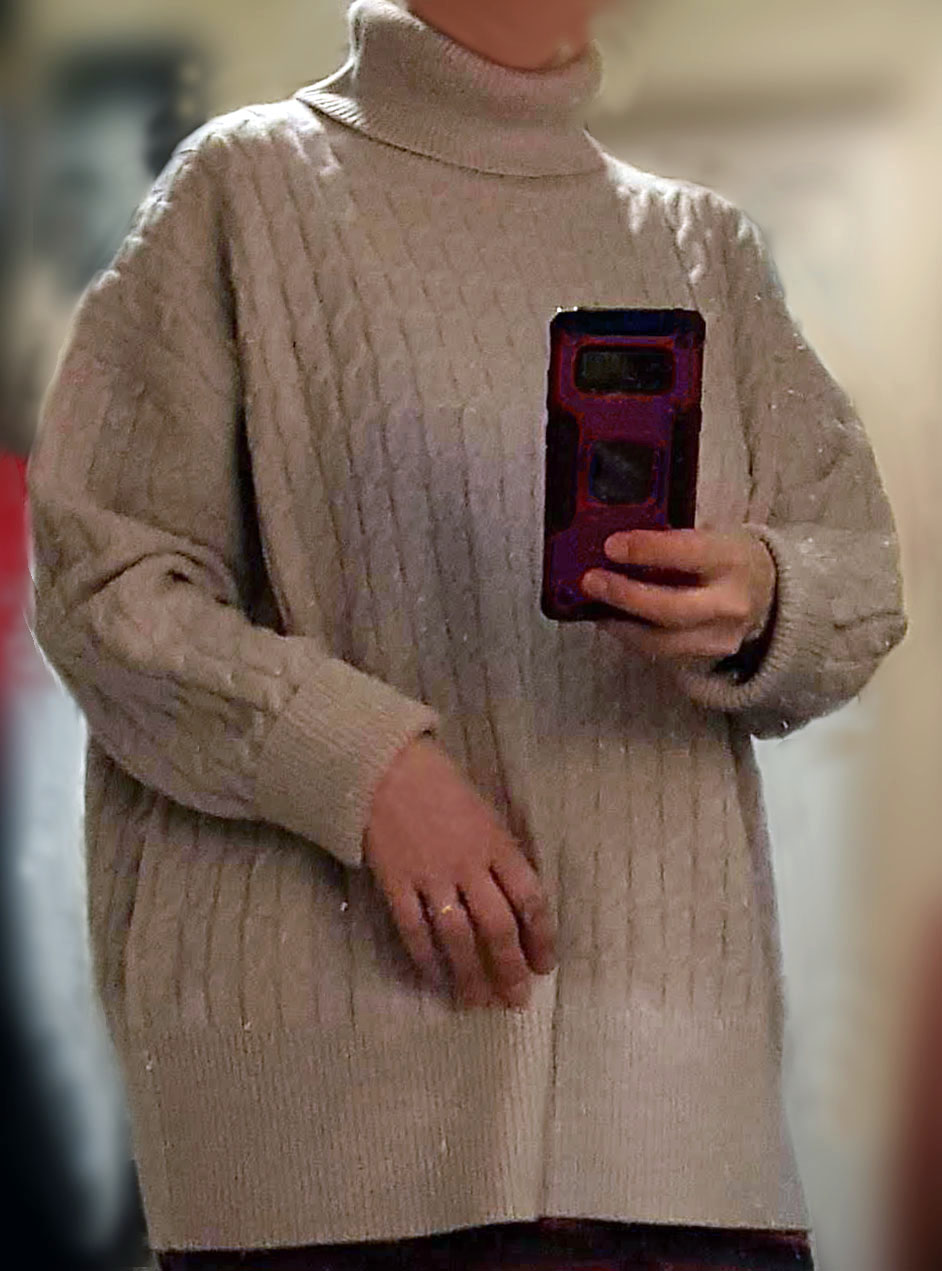 +1Свитер прям новогодний. Благородный орнамент косы смотрятся очень выигрышно. Сейчас такой фасое в моде, мне тоже понравился. Ношу с джинсами или леггинсами. Очень теплый, но в помещении не запариваюсь, что не маловажно. Рекомендую вечно мерзнущим - эта вещь решит проблему.