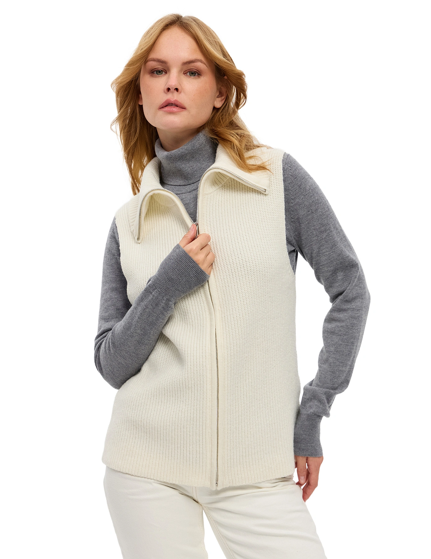 Жилет женский на молнии, цвет белый
