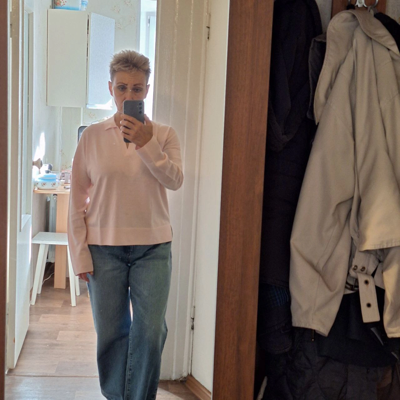 Интересный крой, модный сейчас - поло. Джемпер очень тонкий и легкий, на раннюю осень, весну и лето. Красивые пастельные оттенки, и классические черный и белый. Воротник без застежек, укороченная модель. Мне нравятся такие вещи, в них удобно. И смотрятся очень стильно.