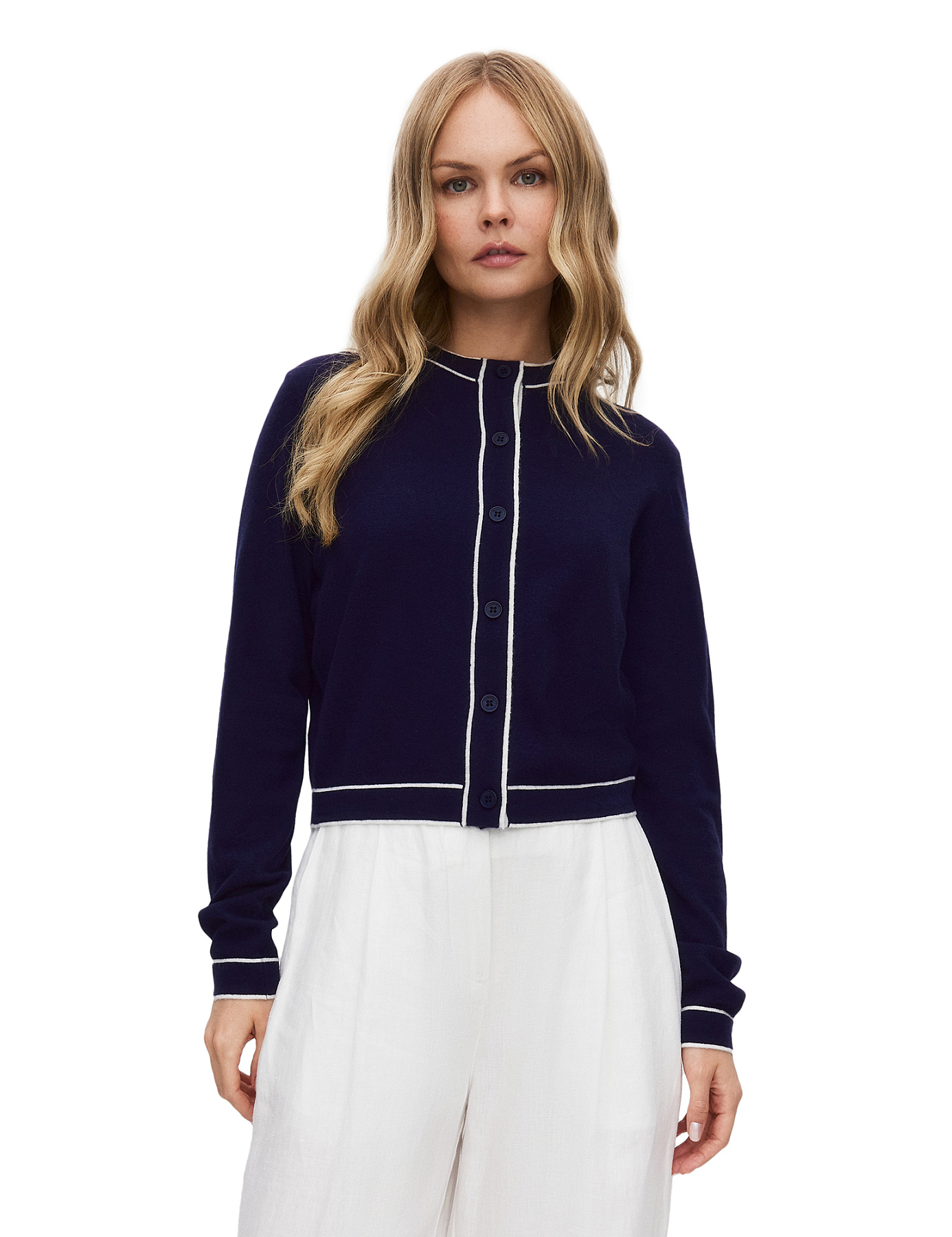 Кардиган на пуговицах с кантом, цвет темно-синий
