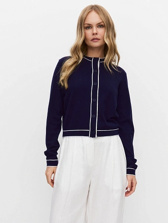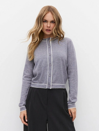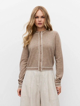 Кардиган на пуговицах с кантом, цвет бежевый меланж