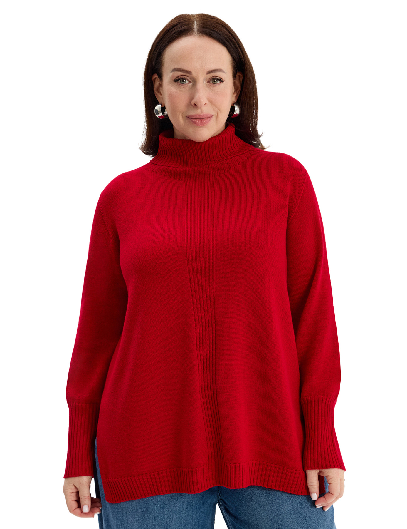 Обновите свой гардероб этим элегантным женским свитером с высоким воротником. Свободный крой и продуманные детали делают его особенным. Воротник с отворотом регулируется по высоте, а скошенные плечи визуально корректируют фигуру. Манжеты и низ в рубчик добавляют текстуру и позволяют варьировать посадку. Орнамент, расположенный по центру изделия спереди и сзади, выгодно выделяет силуэт.